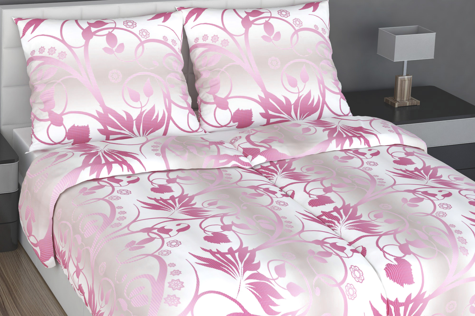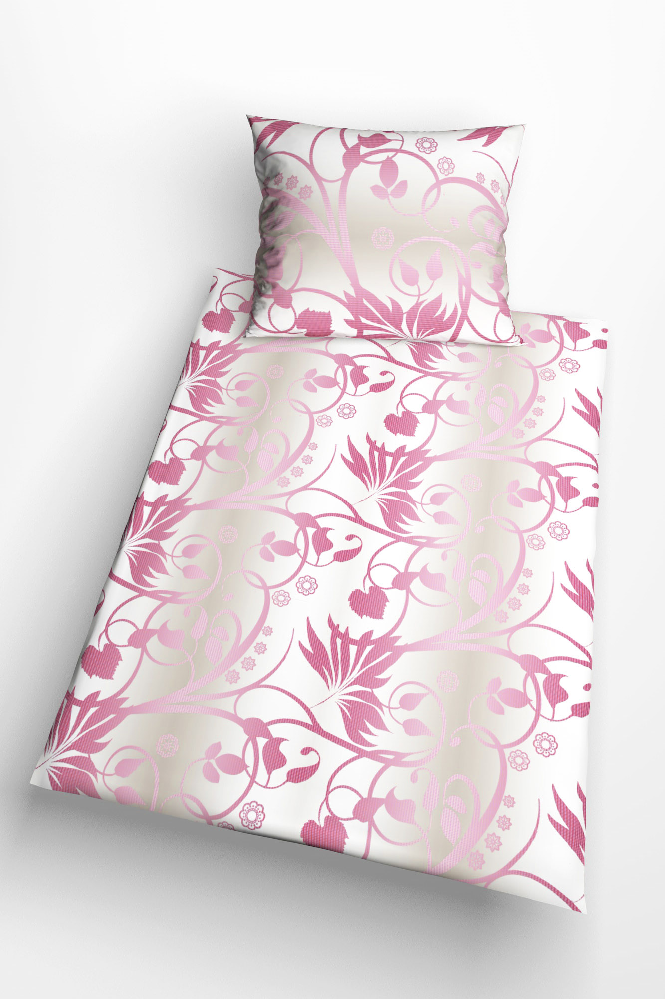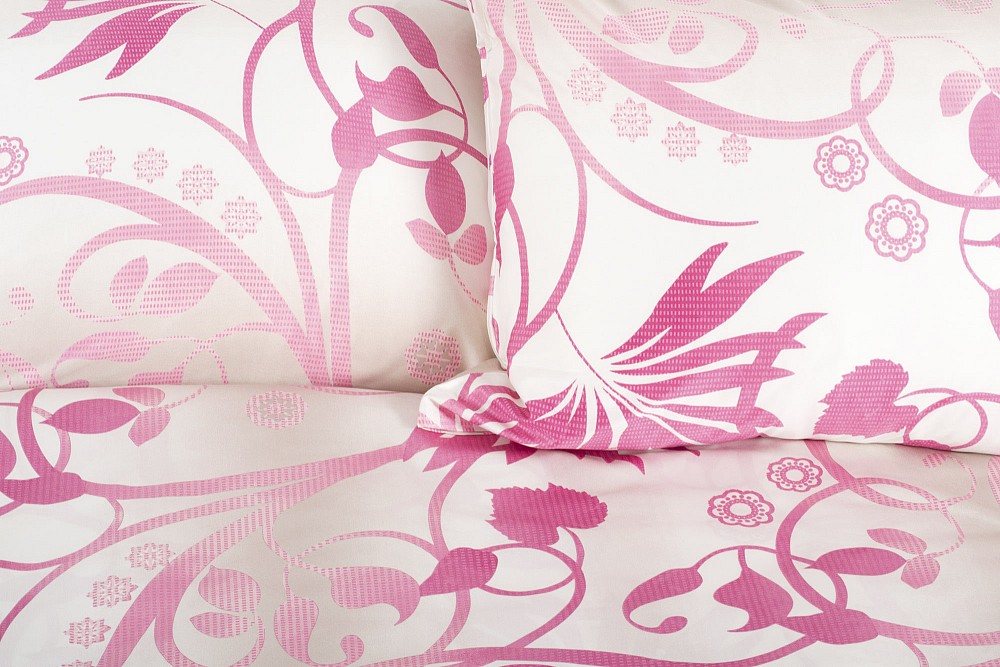 Sötétrózsaszín virágmintás ágyneműhuzat.