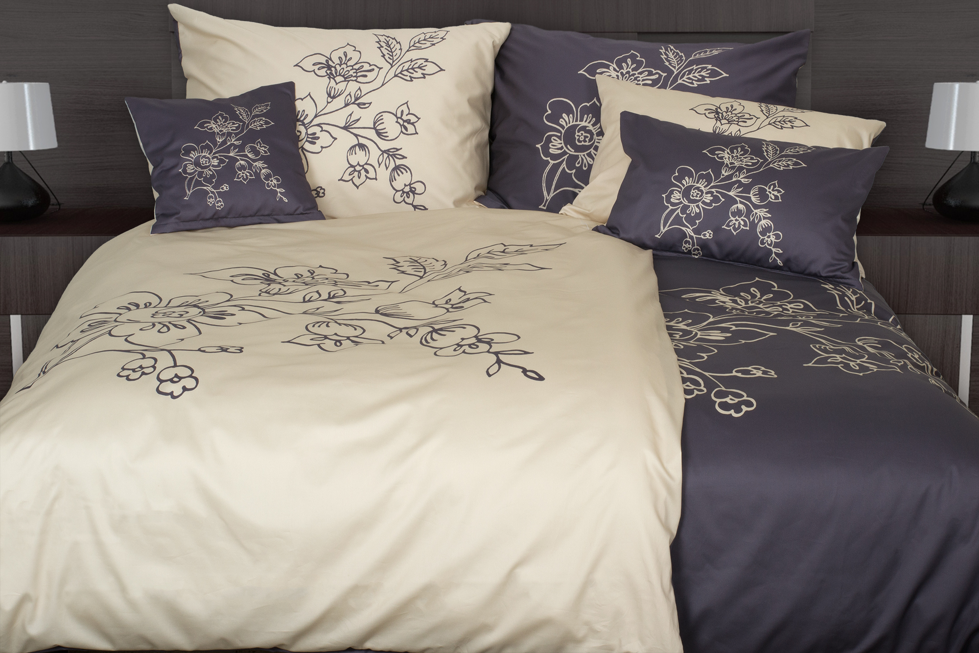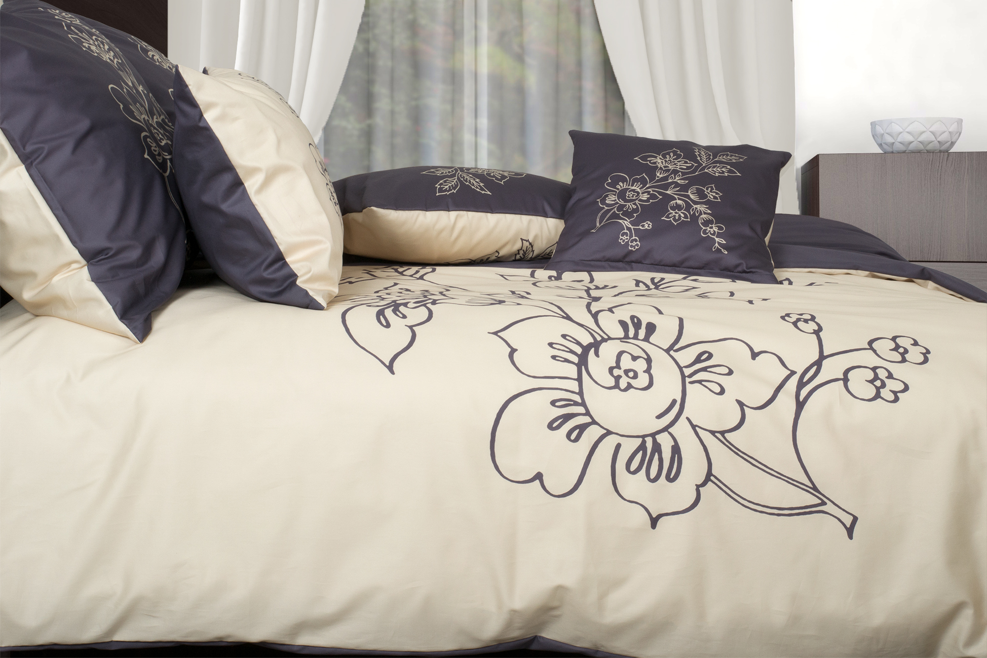 Elegáns bézs ágyneműhuzat virággal
