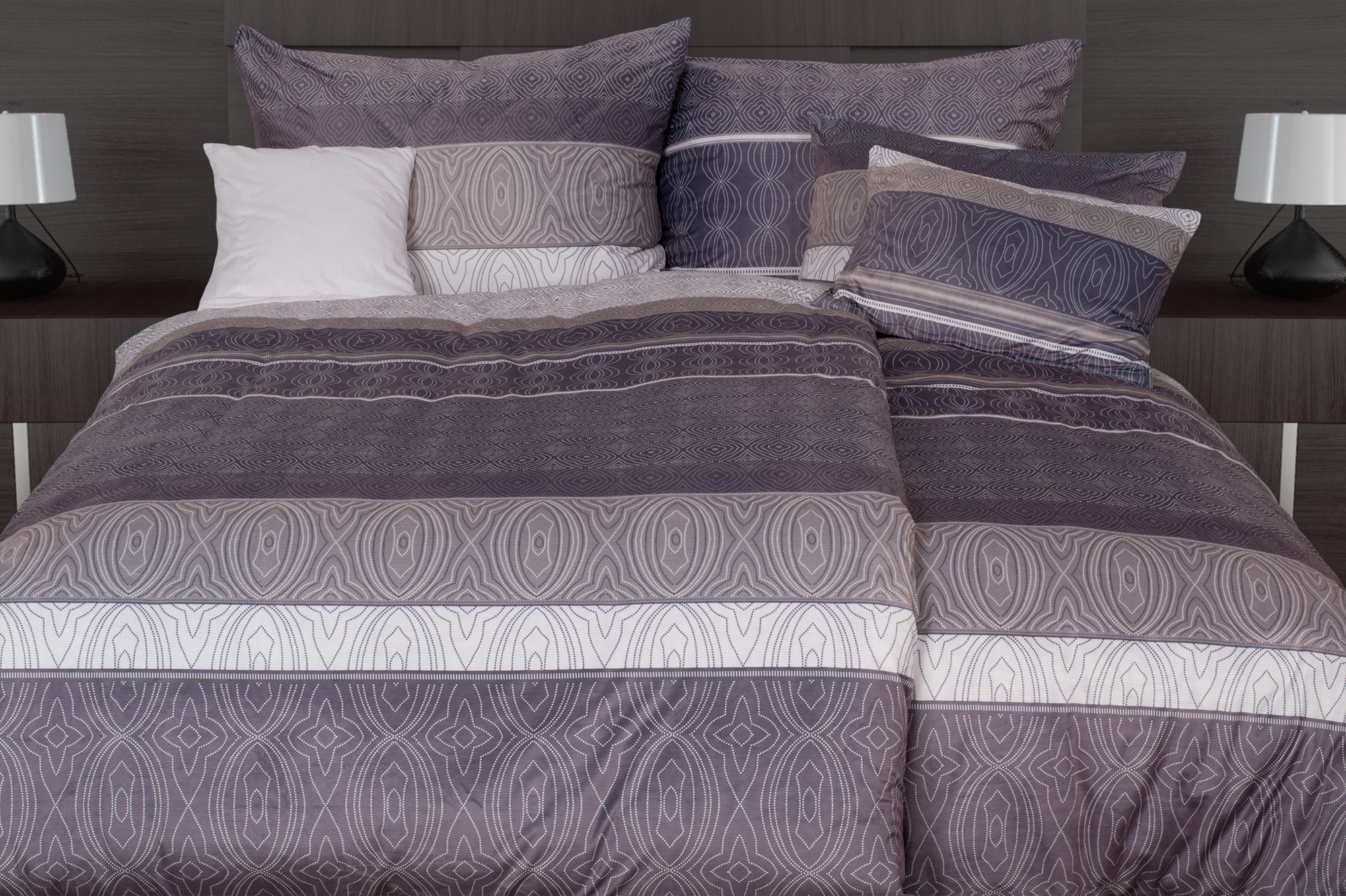 Az ágynemű felületén a barna különböző árnyalatait találjuk, melyek elegáns csíkokba vannak rendezve.